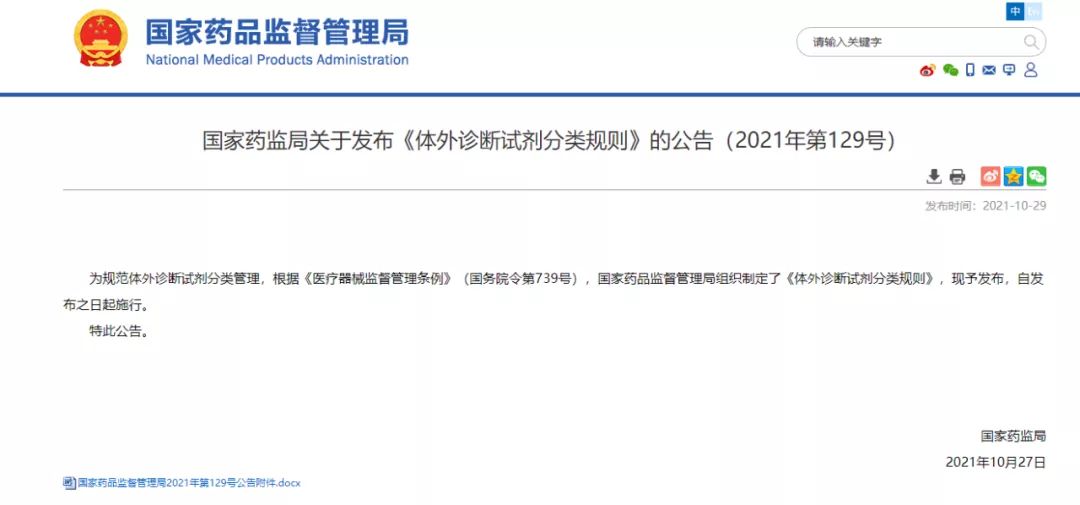 國家藥監(jiān)局發(fā)布《體外診斷試劑分類規(guī)則》公告及解讀
