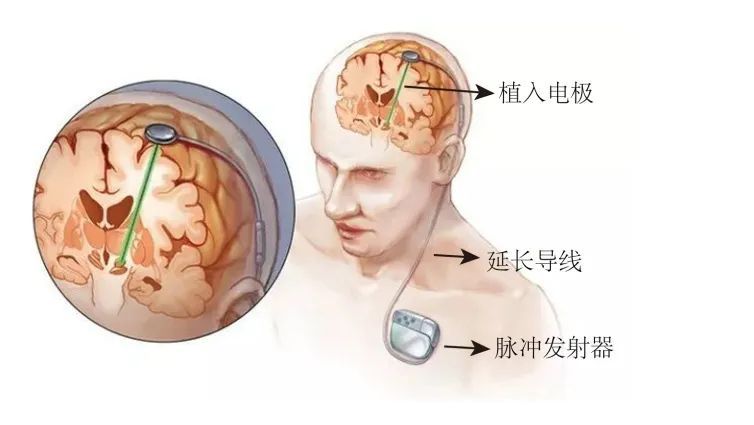 在發(fā)病初期,藥物治療是首選,后期隨著疾病進(jìn)展,藥物逐漸失去療效,就可以使用目前被廣泛認(rèn)可的首選外科療法——腦深部電刺激療法(Deep Brain Stimulation,DBS),也稱腦起搏器,它是一種有源植入醫(yī)療器械,于20世紀(jì)70年代出現(xiàn),是通過立體定向技術(shù),將電極植入腦內(nèi)特定核團(tuán),連接植入胸部的脈沖發(fā)生器,發(fā)放電脈沖對特定核團(tuán)神經(jīng)元的功能進(jìn)行調(diào)控,以改善癥狀,是目前國際上最先進(jìn)的神經(jīng)調(diào)控技術(shù),用于藥物不能有效控制運動障礙癥狀的帕金森患者。