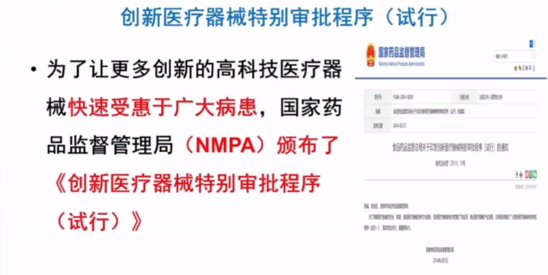 2014年2月7日,為保障醫(yī)療器械的安全有效,鼓勵(lì)醫(yī)療器械的研究與創(chuàng)新,促進(jìn)醫(yī)療器械新技術(shù)的推廣應(yīng)用,推動(dòng)醫(yī)療器械產(chǎn)業(yè)發(fā)展,國(guó)家藥監(jiān)局制定了《創(chuàng)新醫(yī)療器械特別審批程序(試行)》,政策從創(chuàng)新產(chǎn)品定義、提交資料、證明性文件、等方面規(guī)定了創(chuàng)新器械審批流程和要點(diǎn)。