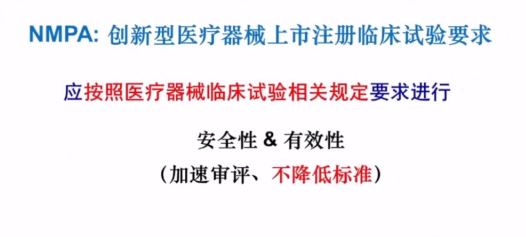 李衛(wèi)教授講到,雖然是創(chuàng)新醫(yī)療器械,國(guó)家藥監(jiān)局規(guī)定也要按照醫(yī)療器械臨床試驗(yàn)相關(guān)規(guī)定的要求去執(zhí)行,評(píng)價(jià)產(chǎn)品的安全性和有效性,創(chuàng)新政策的推出是為了加速審評(píng)過程,但不會(huì)降低審批標(biāo)準(zhǔn)。