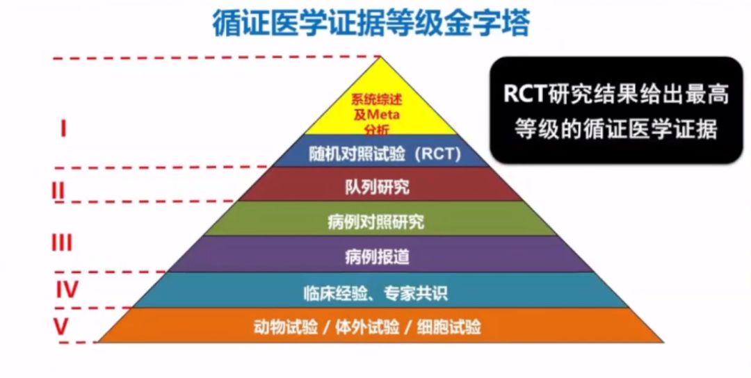 李衛(wèi)教授表示,根據(jù)循證醫(yī)學(xué)證據(jù)級(jí)別金字塔中最高等級(jí)的I級(jí)證據(jù)顯示,基于良好設(shè)計(jì)的隨機(jī)對(duì)照試驗(yàn)(randomized controlled trial,RCT)最能夠評(píng)價(jià)器械的安全性和有效性。