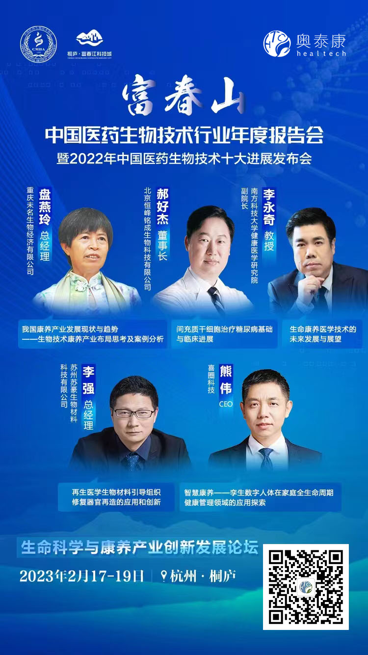 2023年2月17-19日,由中國醫(yī)藥生物技術(shù)協(xié)會、《中國醫(yī)藥生物技術(shù)》雜志和桐廬縣人民政府聯(lián)合舉辦的 “富春山•中國醫(yī)藥生物技術(shù)行業(yè)年度報告會暨2022年中國醫(yī)藥生物技術(shù)十大進展發(fā)布會”將于杭州桐廬召開。富春山會議是中國醫(yī)藥生物技術(shù)行業(yè)的年度總結(jié)會議,以展示行業(yè)發(fā)展的新進展、新成就,總結(jié)發(fā)展經(jīng)驗,洞悉發(fā)展趨勢,掌握行業(yè)方向,推動整個行業(yè)縱深發(fā)展為宗旨,受到社會及行業(yè)的廣泛認可和好評。奧泰康作為報告嘉賓應(yīng)邀出席會議并發(fā)表主題報告,期待醫(yī)療同仁蒞臨會議交流探討。