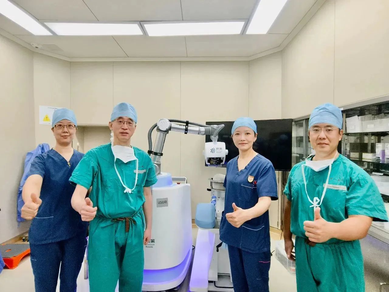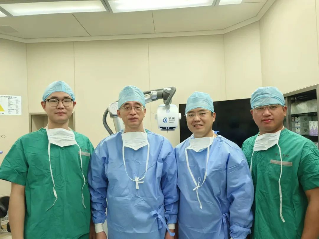 ▲華山醫(yī)院吳文育主任(左二)與磅策醫(yī)療團(tuán)隊臨床試驗合影