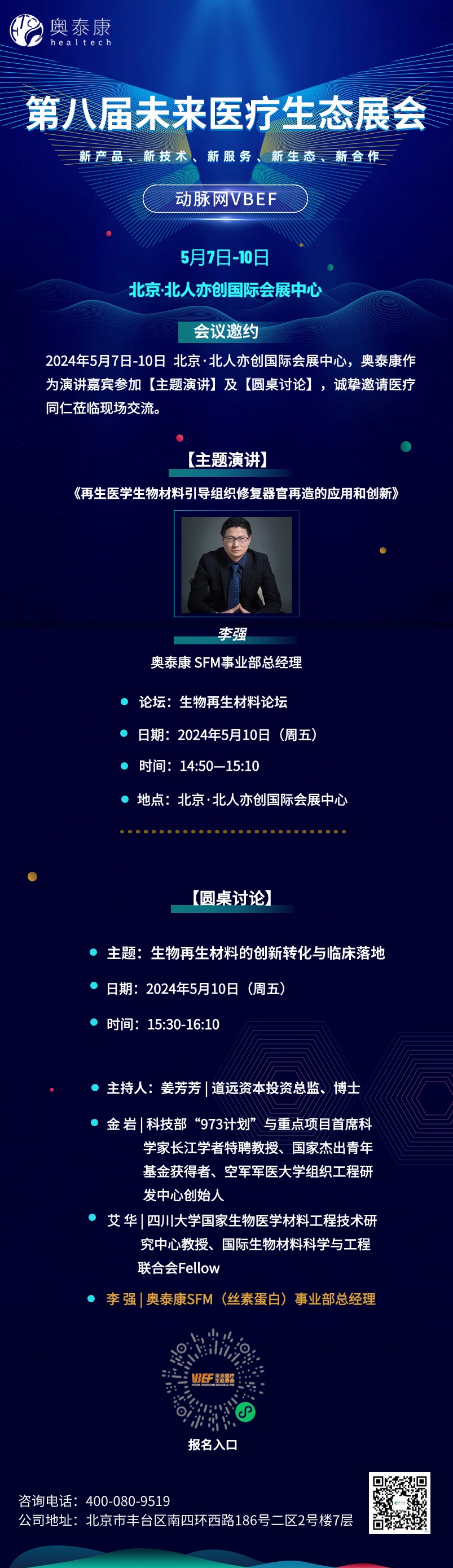 ??動脈網(wǎng)·VBEF——第八屆未來醫(yī)療生態(tài)展會,奧泰康·再生醫(yī)學生物材料演講???5月10日,與您相約??北京·北人亦創(chuàng)國際會展中心