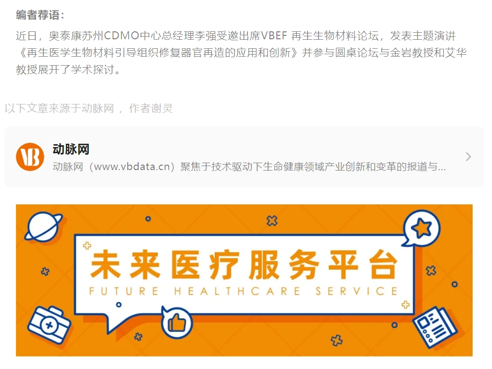 奧泰康受邀出席VBEF 生物再生材料論壇 蘇州CDMO中心總經(jīng)理李強(qiáng)發(fā)表主題演講并參與圓桌討論