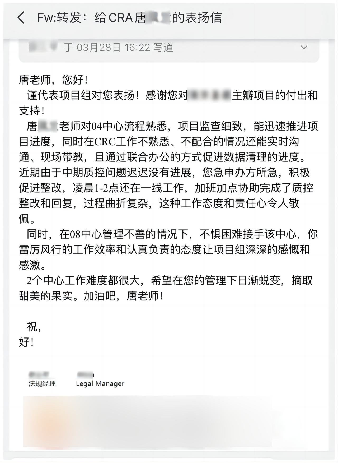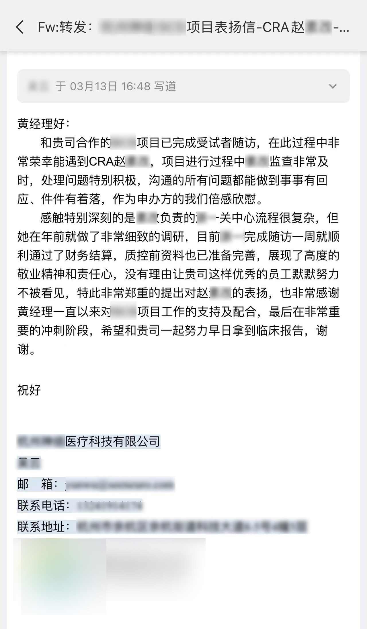 臨床資訊速遞實力點贊 ——來自臨床的感謝信&表揚信?? 一起查收吧~臨床試驗 作為人類追求生命健康過程中的重要一環(huán),照亮著醫(yī)學前行的道路,新藥和醫(yī)療器械通過臨床試驗,經(jīng)過科學的研究驗證其安全性和有效性之后,獲得批準上市的資格,為臨床患者帶來健康和希望。是每一位參與臨床試驗的受試者、研究者、合作伙伴和醫(yī)療從業(yè)者共同的努力,使中國臨床試驗事業(yè)不斷向更高的臺階邁進。