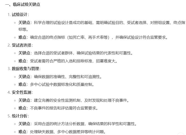 然而,每一項創(chuàng)新技術(shù)的臨床應(yīng)用,都離不開嚴(yán)謹(jǐn)?shù)呐R床試驗驗證。心臟瓣膜醫(yī)療器械的臨床試驗和注冊申報是一個復(fù)雜且嚴(yán)格的過程,其中涉及的多個關(guān)鍵環(huán)節(jié)和潛在難點,關(guān)于這些,看看當(dāng)下最熱門 AI工具deepseek怎么說吧~
