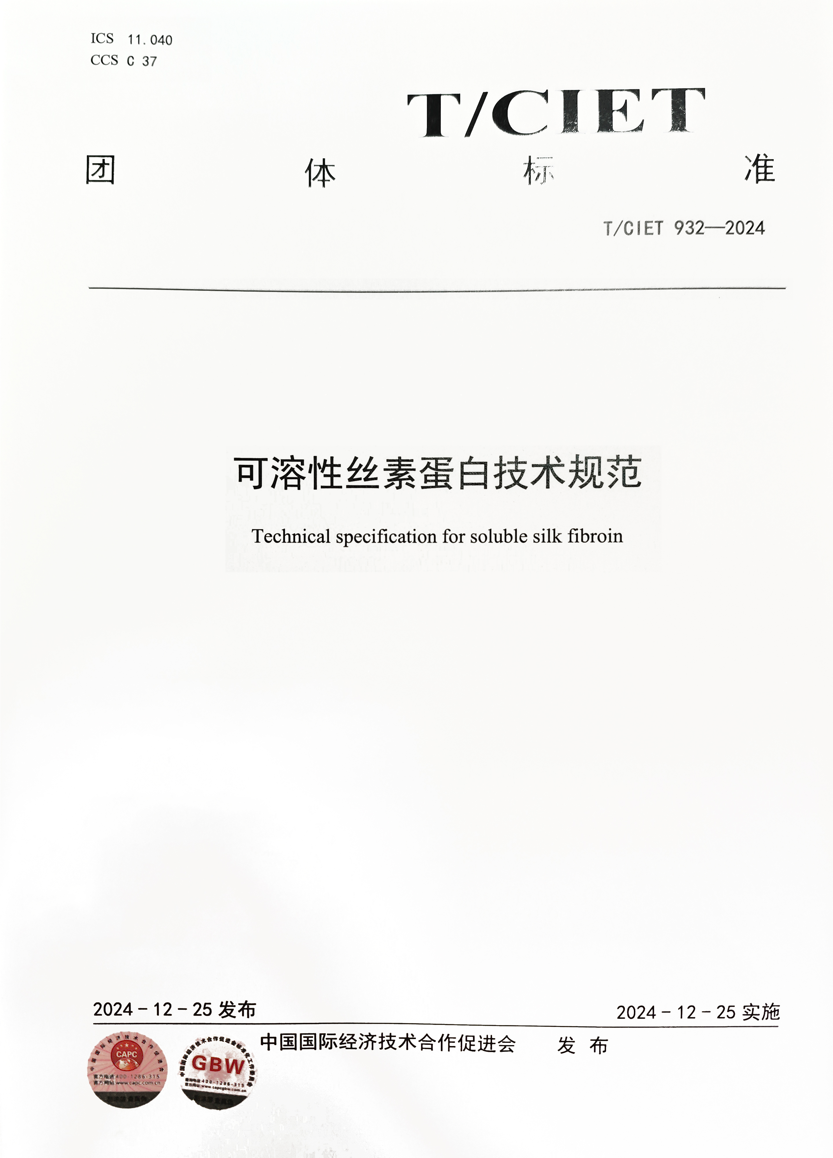 T/CIET 932-2024標(biāo)準(zhǔn)是國內(nèi)首個(gè)針對(duì)可溶性絲素蛋白的綜合性技術(shù)規(guī)范,明確了產(chǎn)品的關(guān)鍵性能指標(biāo)、試驗(yàn)方法及質(zhì)量控制要求,為可溶性絲素蛋白的生產(chǎn)和應(yīng)用提供了統(tǒng)一的技術(shù)依據(jù)。奧泰康蘇州CDMO中心在標(biāo)準(zhǔn)制定過程中,結(jié)合自身在絲素蛋白提取、純化及應(yīng)用方面的創(chuàng)新成果,助力標(biāo)準(zhǔn)更具科學(xué)性和可操作性,推動(dòng)行業(yè)向規(guī)范化、高質(zhì)量發(fā)展邁進(jìn),此外也參與過多項(xiàng)絲素蛋白相關(guān)團(tuán)體標(biāo)準(zhǔn)的制定,提供諸多有效建議,未來,也將持續(xù)助力生物材料領(lǐng)域的高水平發(fā)展。
