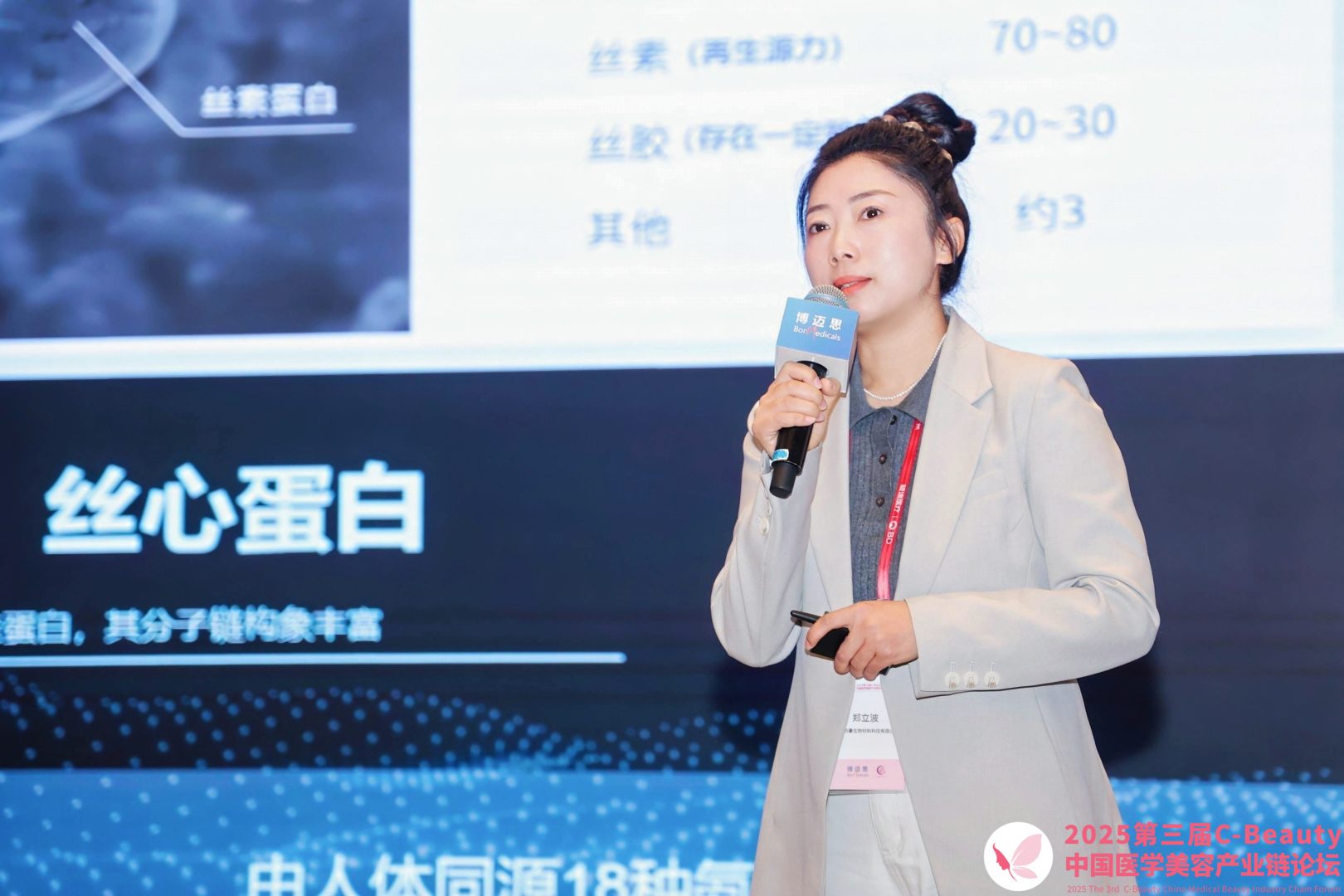 鄭立波女士圍繞絲素蛋白的天然優(yōu)勢、技術突破與美妝市場前景進行了深度分享。