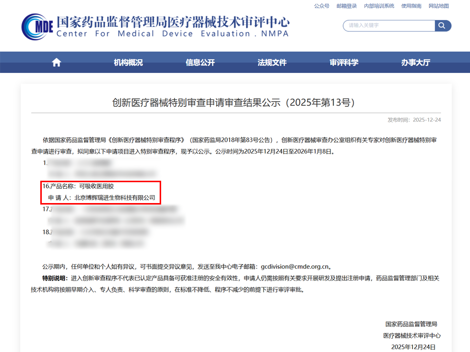 里程碑????????? 奧泰康助力博輝瑞進【可吸收醫(yī)用膠】產品通過創(chuàng)新審批[煙花][煙花]近日,北京博輝瑞進生物科技有限公司自主研發(fā)的產品【可吸收醫(yī)用膠】正式進入國家創(chuàng)新醫(yī)療器械特別審批程序(綠色通道),奧泰康提供創(chuàng)新申報服務。