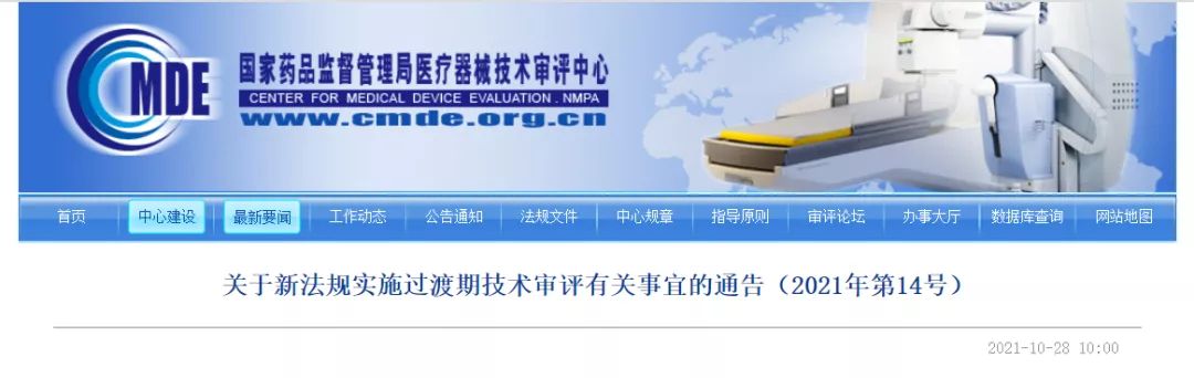 CMDE《關(guān)于新法規(guī)實(shí)施過(guò)渡期技術(shù)審評(píng)有關(guān)事宜的通告(2021年第14號(hào))》